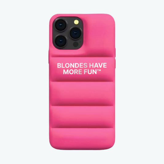 "BLONDES HAVE MORE FUN" PUFFER-STYLE CASE - PINK