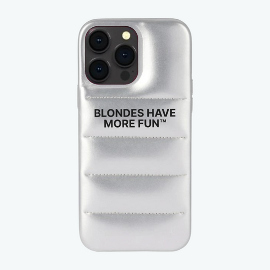 "BLONDES HAVE MORE FUN" PUFFER-STYLE CASE - SILVER